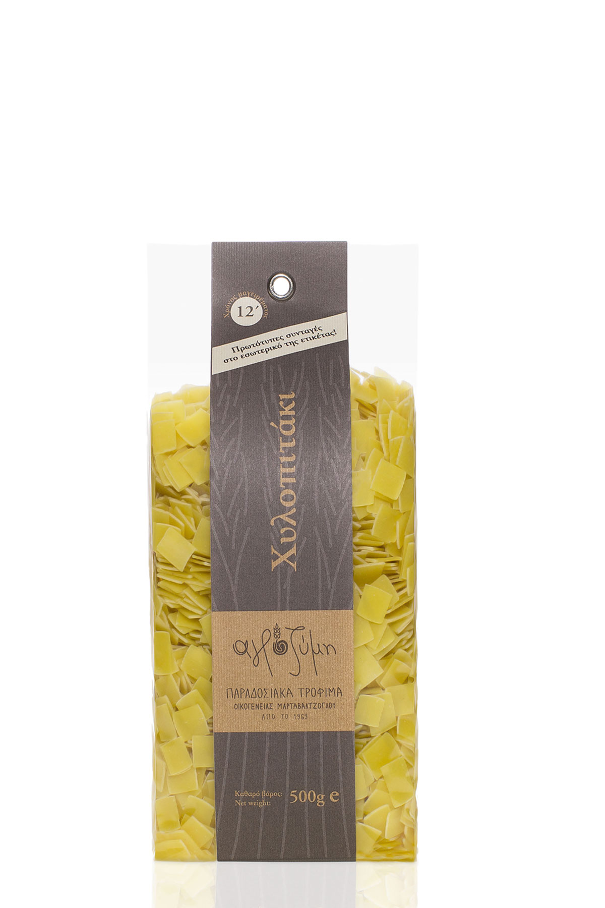 Μικρά τετραγωνάκια πεντανόστιμης ζύμης, ιδανικά για να βράσουν μέσα σε σάλτσα, να μπούνε στη γάστρα με λίγο εκλεκτό κρέας, να δώσουν «σώμα» σε σούπες, να τα απολαύσουν τα παιδιά, εύκολα και χωρίς να λερωθούν. Το χυλοπιτάκι της Αγροζύμης κρύβει μέσα του όλη τη νοστιμιά του εκλεκτού σιταριού, σε συνδυασμό με ολόφρεσκο γάλα και αυγά. Ακόμη και όταν το βράζουμε σε σκέτο νερό είναι πεντανόστιμο. ∆εν χρειάζεται στράγγισμα, το σερβίρουμε με το χυλωμένο ζουμάκι του και απολαμβάνουμε τη γεύση της παράδοσης.